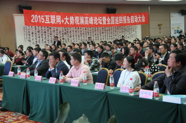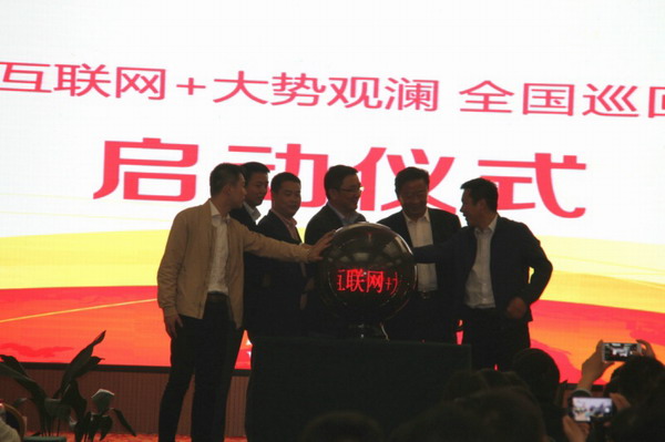 圖為:?jiǎn)?dòng)互聯(lián)網(wǎng)+大勢(shì)觀瀾全國(guó)巡回報(bào)告大會(huì)儀式