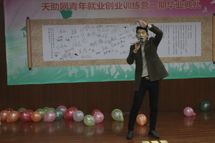 隨后,50名學(xué)員一起宣讀了“天助網(wǎng)青年創(chuàng)業(yè)就業(yè)營”畢業(yè)宣言,響徹云霄的吶喊,宣誓著一股青春的銳氣和盛放的光芒。