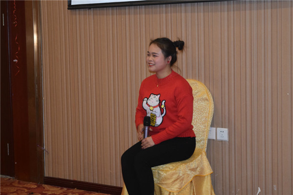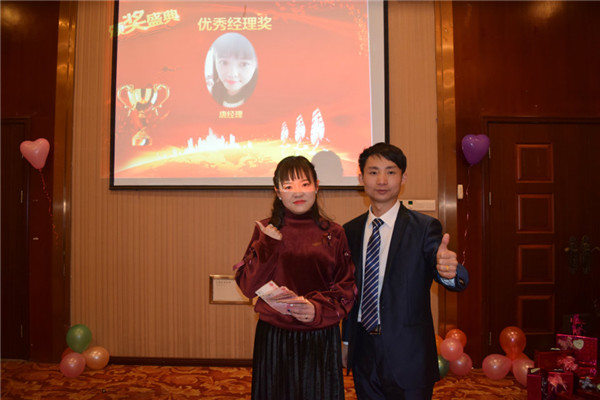 優(yōu)秀的團(tuán)隊(duì)離不開一個(gè)優(yōu)秀的經(jīng)理,離不開她的辛勤付出,下面頒發(fā)優(yōu)秀經(jīng)理獎(jiǎng)-唐媛晙(獎(jiǎng)金1000元),有請(qǐng)經(jīng)理發(fā)表獲獎(jiǎng)感言。