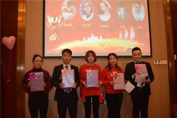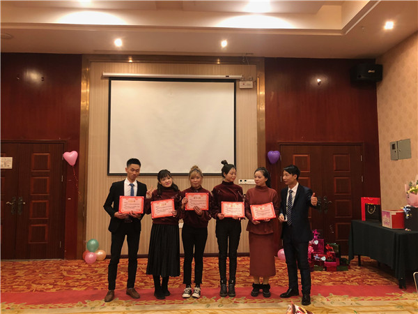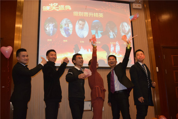公司的人各盡其職,下面頒發(fā)年度晉升精英獎(jiǎng)--唐經(jīng)理晉升銷售總監(jiān)、楊學(xué)春晉升銷售組長(zhǎng)、袁釵晉升人事組長(zhǎng)、陸婉瑩晉升人事組長(zhǎng)、瞿妮晉升設(shè)計(jì)組長(zhǎng)。