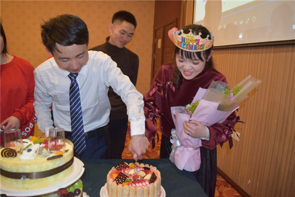 在今天還有一個(gè)特別的日子,我們美麗的唐總監(jiān)三十歲生日。祝福我們唐總監(jiān)生日快樂,和我們肖總永遠(yuǎn)幸福美滿。