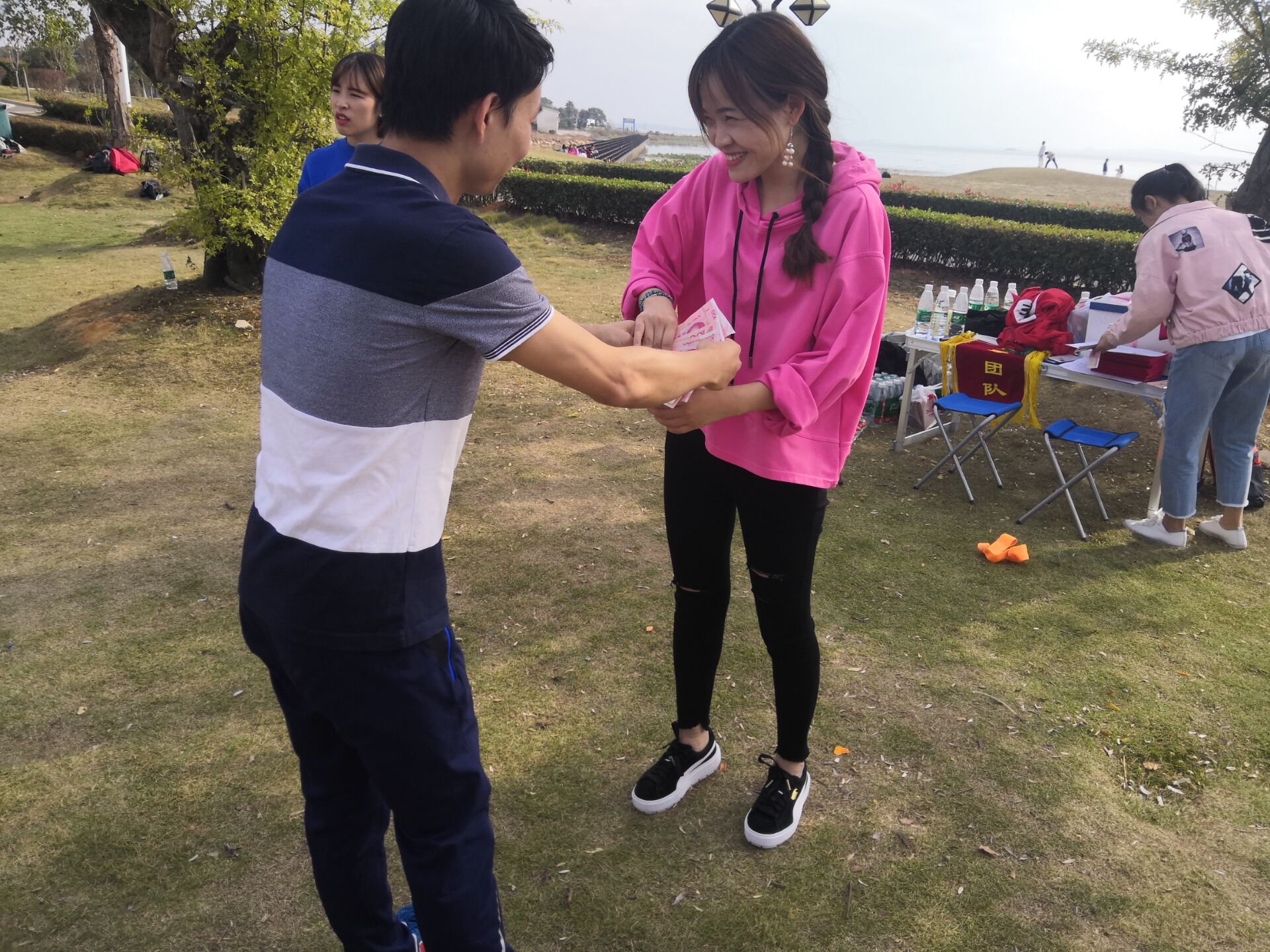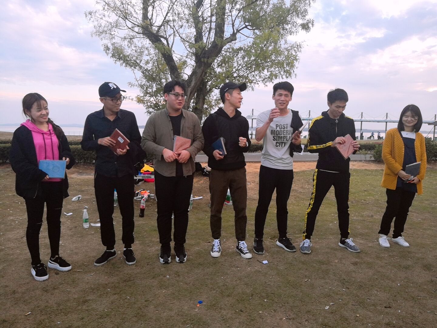 所有人到齊了,隊(duì)也站好了,我們的活動(dòng)就可以正式開始了。我們大家都很高興,本次活動(dòng)的主持人是我們可愛的廖主管。