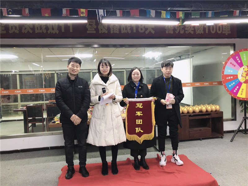 接下來(lái),我們頒發(fā)最佳部門(mén)獎(jiǎng),11月一個(gè)月大家都很拼,雄鷹隊(duì)完成率第一名獎(jiǎng)勵(lì);戰(zhàn)狼隊(duì)完成率第二名獎(jiǎng)勵(lì);凌云隊(duì)完成率第三名獎(jiǎng)勵(lì)。