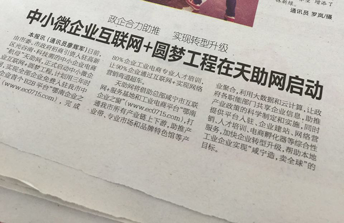 香城都市報(bào):政企合力助推 實(shí)現(xiàn)轉(zhuǎn)型升級(jí)——中小微企業(yè)互聯(lián)網(wǎng)+圓夢(mèng)工程在天助網(wǎng)啟動(dòng)