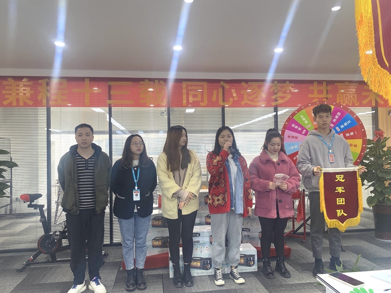 接下來頒發(fā)服務(wù)之星:夏靖富,技術(shù)之星;何蘭潔,最佳通話時長:蔣雙雙,邀約最多;徐輝,新客戶最多:龔美宇。