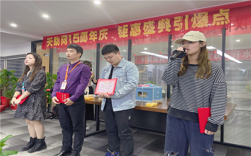 然后,我們頒發(fā)優(yōu)秀客服獎(jiǎng),獲獎(jiǎng)?wù)叻謩e為:第一名余文華、第二名馬小紅、第三名周苗。肖總為優(yōu)秀客服一一頒發(fā)獎(jiǎng)勵(lì)、獲獎(jiǎng)?wù)甙l(fā)表獲獎(jiǎng)感言。