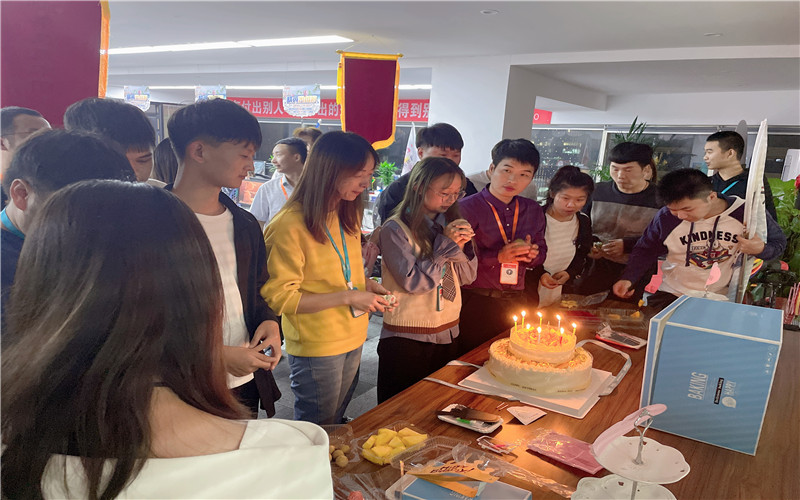 總結(jié)大會(huì)結(jié)束后,企盟天助的員工為壽星們唱生日歌,切生日蛋糕,共祝生日。