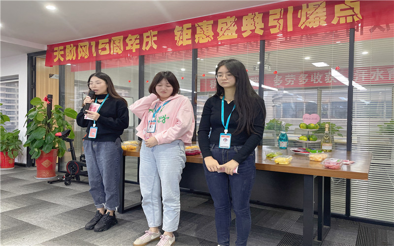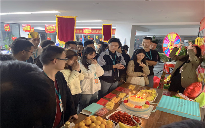 總結(jié)大會結(jié)束后,企盟天助的員工為壽星們唱生日歌,切生日蛋糕,共祝生日。