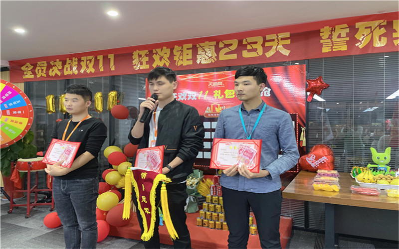 下面進(jìn)入頒獎環(huán)節(jié)。經(jīng)過一個月精彩的角逐,我們的冠軍誕生了,是我們神鋒隊的張鋮,亞軍是我們超越隊的王東和季軍是我們雄鷹隊的徐輝。由肖總頒發(fā)獎項后,獲獎?wù)甙l(fā)表了獲獎感言。