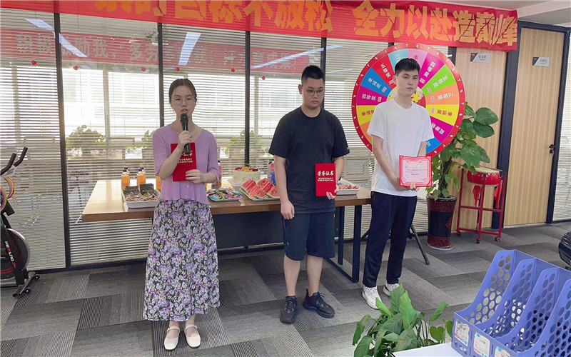 最后,我們頒發(fā)月度前三:張鋮 ,王東;服務(wù)之星:孫晨晨,最佳通話時長:陳迅,新客戶最多:張鋮。肖總為獲獎?wù)哳C發(fā)獎后,獲獎?wù)咭灰话l(fā)表獲獎感言。