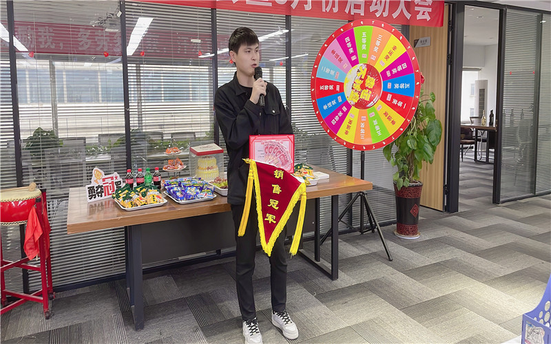 下面進(jìn)入頒獎(jiǎng)環(huán)節(jié)。經(jīng)過一個(gè)月精彩的角逐,我們的冠軍誕生了,是我們神鋒隊(duì)的張鋮。由肖總頒發(fā)獎(jiǎng)項(xiàng)后,獲獎(jiǎng)?wù)甙l(fā)表了獲獎(jiǎng)感言。