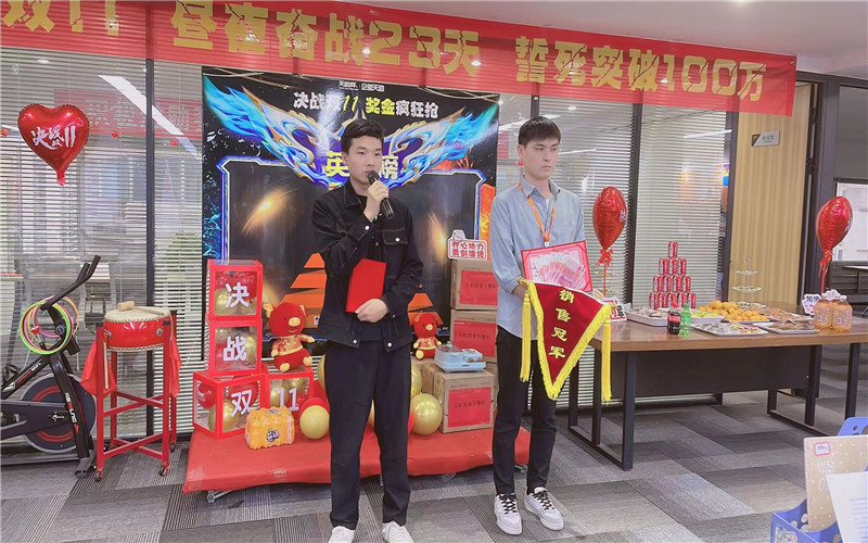下面進入頒獎環(huán)節(jié)。經(jīng)過一個月精彩的角逐,我們的冠軍誕生了,是我們神鋒隊的張鋮以及亞軍王東。由肖總頒發(fā)獎項后,獲獎者發(fā)表了獲獎感言。