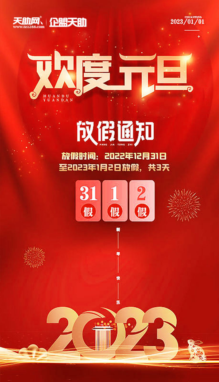 根據(jù)《國(guó)務(wù)院辦公廳關(guān)于2023年部分節(jié)假日安排的通知》,現(xiàn)將2023年元旦節(jié)放假安排公布如下: