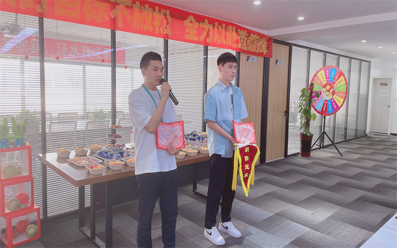 下面進入頒獎環(huán)節(jié)。經(jīng)過一個月精彩的角逐,我們的冠軍誕生了,是我們神鋒隊的張鋮;亞軍是我們超越隊的王東。由肖總頒發(fā)獎項后,獲獎?wù)甙l(fā)表了獲獎感言。