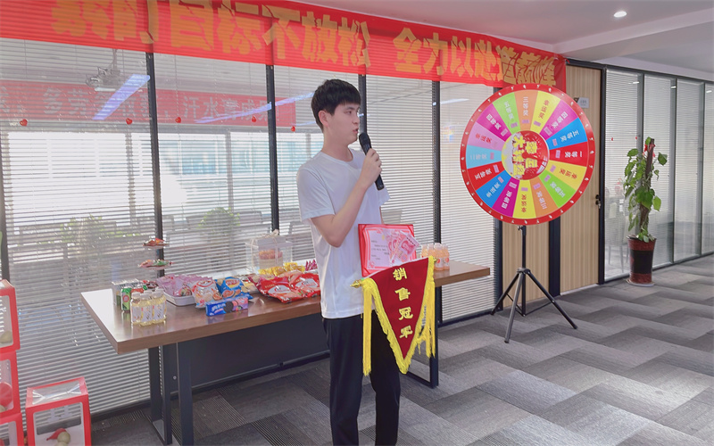下面進(jìn)入頒獎(jiǎng)環(huán)節(jié)。經(jīng)過(guò)一個(gè)月精彩的角逐,我們的冠軍誕生了,是我們神鋒隊(duì)的張鋮。由肖總頒發(fā)獎(jiǎng)項(xiàng)后,獲獎(jiǎng)?wù)甙l(fā)表了獲獎(jiǎng)感言。