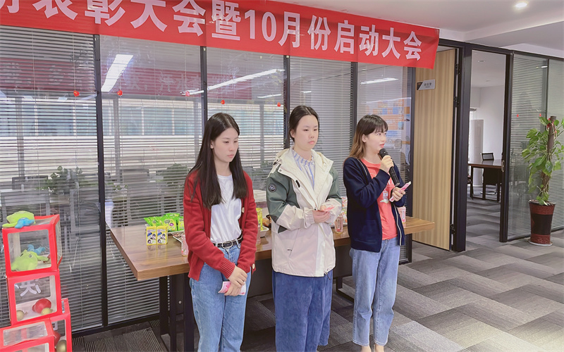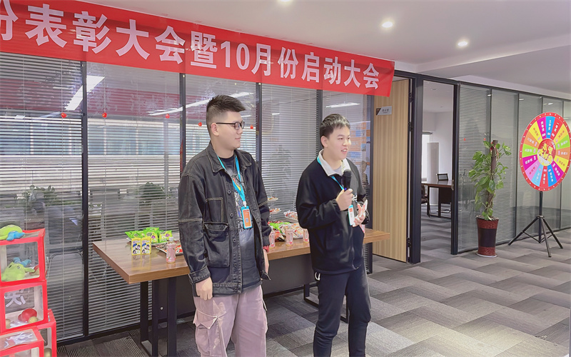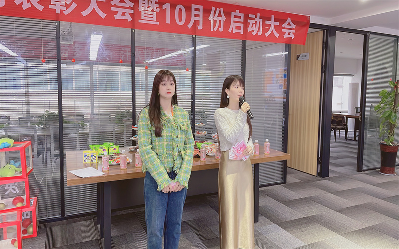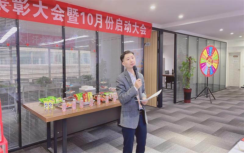 下午五點(diǎn),我們的啟動(dòng)大會(huì)熱烈開(kāi)始了,本次活動(dòng)的主持人是我們美麗的蔡經(jīng)理。在大會(huì)上,肖總進(jìn)行了9月份的總結(jié)和10月份的規(guī)劃。