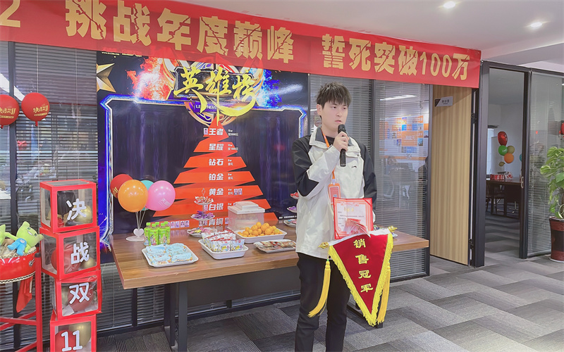 接下來(lái),我們頒發(fā)雙十一英雄榜獎(jiǎng),恭喜張鋮拿到王者等級(jí)獎(jiǎng)品,獎(jiǎng)勵(lì)現(xiàn)金2000元;恭喜神鋒隊(duì)打破去年雙十一記錄,獎(jiǎng)勵(lì)許經(jīng)理現(xiàn)金2000元;