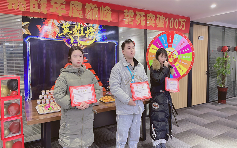接下來我們頒發(fā)優(yōu)秀客服獎(jiǎng),獲獎(jiǎng)?wù)叻謩e為:第一名:周苗、第二名:莊思雨、第三名:馬小紅。肖總為優(yōu)秀客服一一頒發(fā)獎(jiǎng)勵(lì)、獲獎(jiǎng)?wù)甙l(fā)表獲獎(jiǎng)感言。