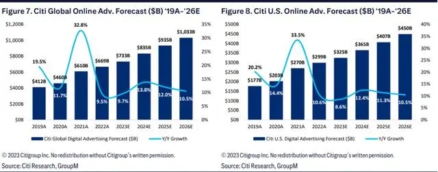 具體來(lái)看,花旗認(rèn)為,Meta最有可能從不斷改善的在線廣告趨勢(shì)中獲益,其次是Pinterest,而亞馬遜廣告收入同比增速可能達(dá)到20%: