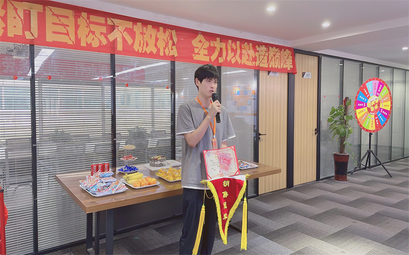 下面進(jìn)入頒獎環(huán)節(jié)。經(jīng)過一個月精彩的角逐,我們的冠亞軍誕生了,冠軍是我們神鋒隊的張鋮。由肖總頒發(fā)獎項后,獲獎?wù)甙l(fā)表了獲獎感言。