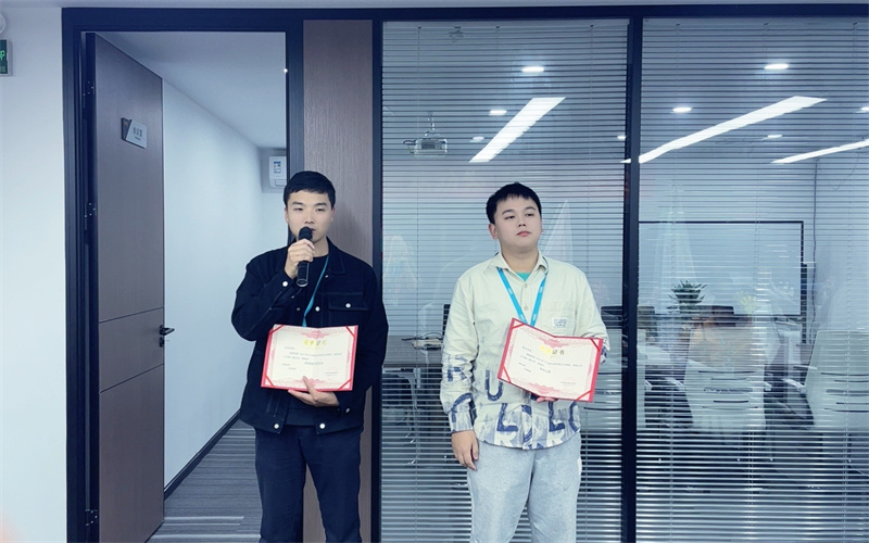 下面進(jìn)入頒獎(jiǎng)環(huán)節(jié)。經(jīng)過一個(gè)月精彩的角逐,我們的冠亞軍誕生了,冠軍是我們超越隊(duì)的王東,亞軍是神鋒隊(duì)的張鋮。由肖總頒發(fā)獎(jiǎng)項(xiàng)后,獲獎(jiǎng)?wù)甙l(fā)表了獲獎(jiǎng)感言。