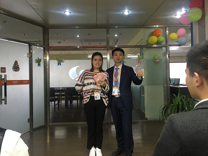 這個(gè)月又是豐收的一個(gè)月,接下來頒發(fā)的是我們公司的冠亞季軍獎(jiǎng),3月的冠亞季軍都是美女,我們公司的男生該要著急了。