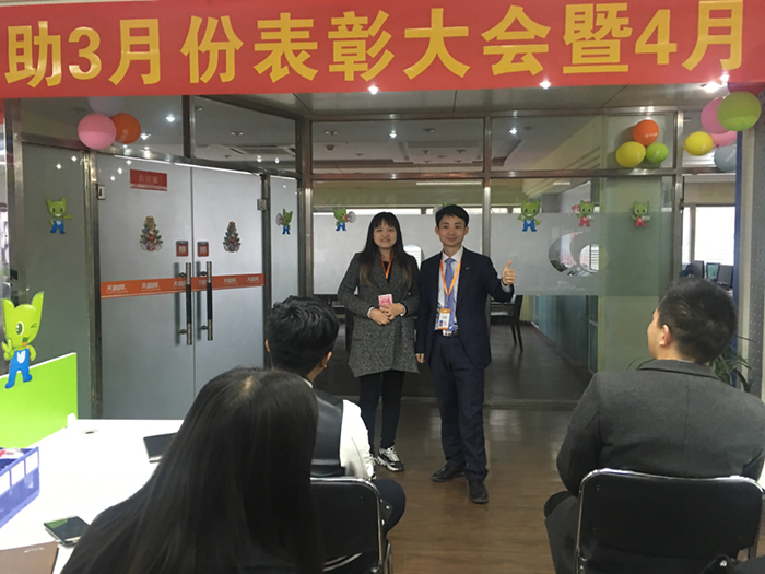 首先由我們的肖總致辭,此次大會(huì)中肖總對(duì)大家3月份的付出表示感謝,3月份大家的成績(jī)都很不錯(cuò),但同時(shí)也出現(xiàn)了一些小小的不足,肖總覺得大家都是很有潛力的,希望大家對(duì)自己要足夠的自信,對(duì)公司足夠自信,對(duì)公司產(chǎn)品足夠自信。相信大家也能謹(jǐn)記肖總的教誨,更上一層樓。