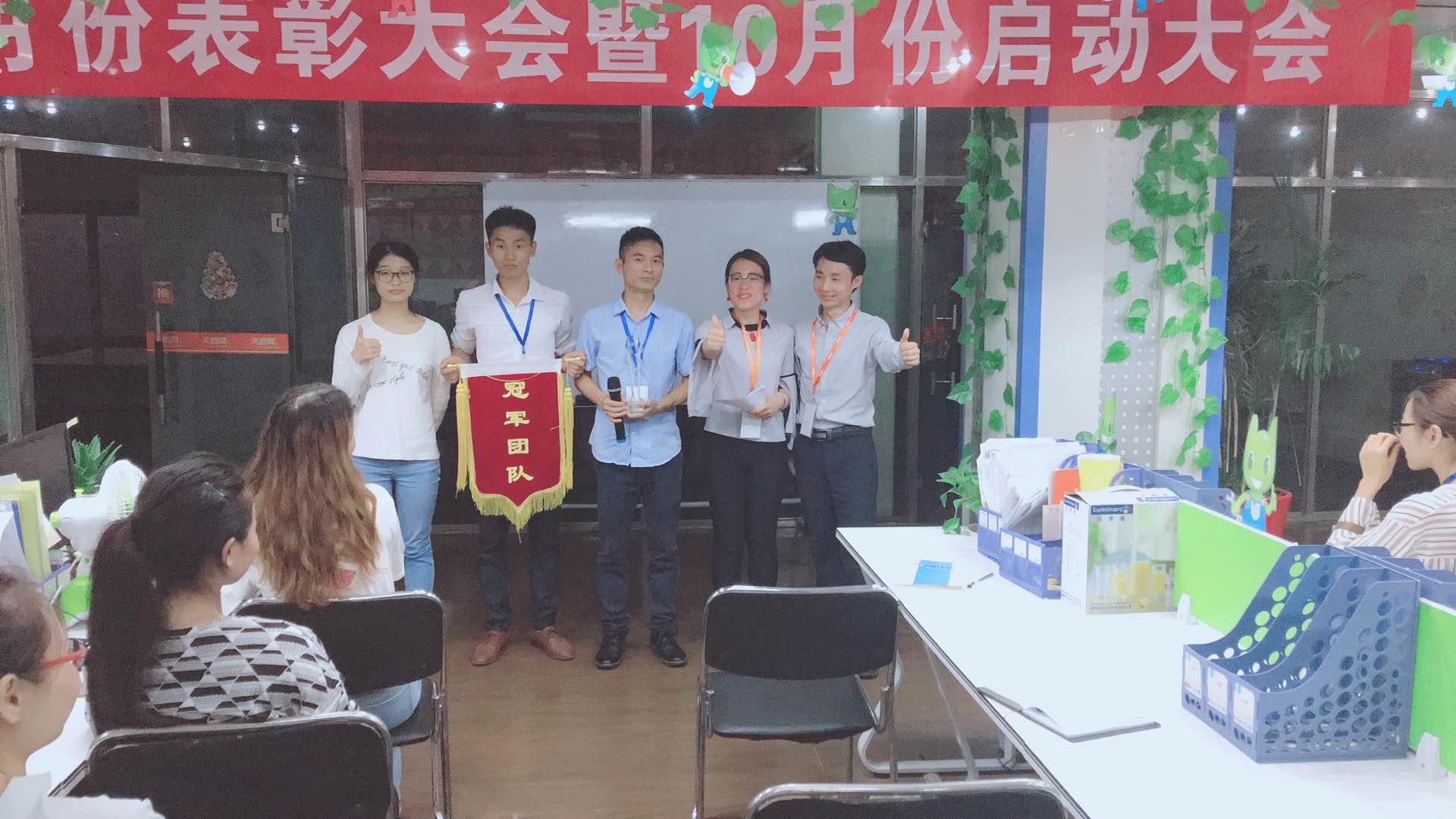 9月的冠軍部門是市場五部,市場五部在廖主管的帶領(lǐng)下真的是戰(zhàn)績輝煌?。ㄗ笃鹜鯘櫳?、楊學(xué)春、黃強、廖夢甜、),希望他們再接再厲往更高的級別沖刺!
