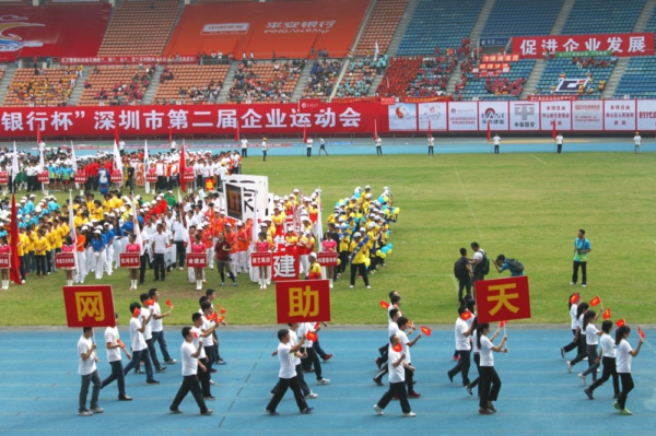 10月26日,主題為“大家動(dòng)起來(lái),企業(yè)更精彩”2014深圳市第二屆企業(yè)運(yùn)動(dòng)會(huì)在深圳體育中心開(kāi)幕,天助網(wǎng)作為受邀方,派出了30余人方隊(duì)參加了此次運(yùn)動(dòng)會(huì)的開(kāi)幕入場(chǎng)儀式。
